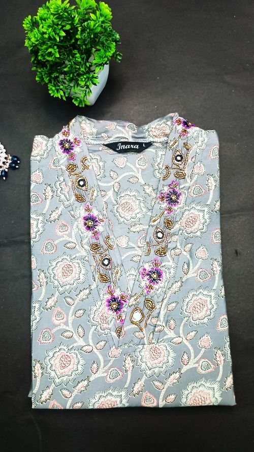 The standout feature of this kurti lies in its impeccable design. Featuring a flattering V neckline, which visually elongates the neck, and stylish side slits for ease of movement and a contemporary touch, this kurti blends sophistication with practical elegance. The lightweight fabric enhances breathability and ensures all-day comfort, making it suitable for every season. Its minimalist design allows you to accessorize effortlessly, whether itโs pairing it with statement jewelry or a chic scarf.
