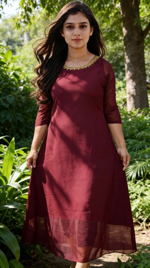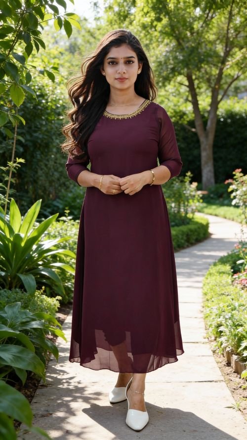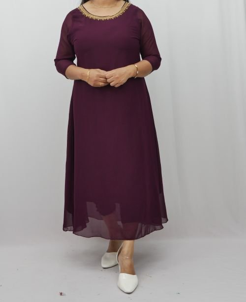 meroon Georgette A-line Kurti with Handwork DetailWomen’s Georgette Handworked A-Line Kurta | Sizes L to 3XL-3116